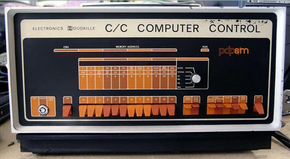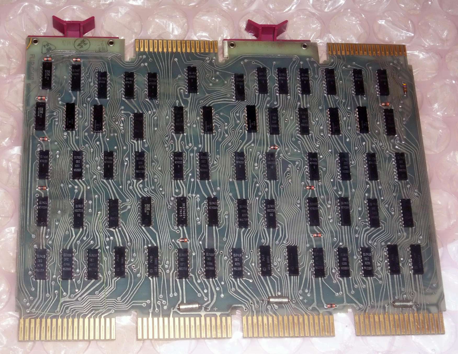 There is one PDP8/m in the museum. It has been restored to running condition. The 8m has a smaller chassis than the 8e, only allowing for a single 20 slot backplane. It also has an updated front panel using LED's instead of the incandecent lamps of the 8e. The rotary switch is also a normal one, not made up of magnetic reed switches.